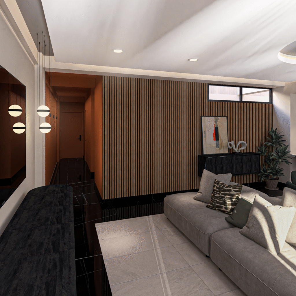 Los espacios comunes de Diana Tower combinan calidez y modernidad en un diseño que invita a la convivencia. Sus muros de celosía de madera crean un ambiente acogedor, permitiendo el paso de la luz y el aire para una sensación de amplitud y bienestar. Un entorno contemporáneo donde cada detalle está pensado para disfrutar.